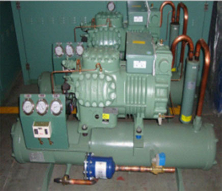 Полугерметичный компрессорно-конденсаторный агрегат оснащен поршневым компрессором. Данное оборудование служит для сжатия и сжижения пара хладагента. Блок питания предоставляется компанией BITZER. Компрессорно-конденсаторный агрегат состоит из конденсатора, бака для жидкости, компрессора, контролера напряжения, соленоидного клапана, датчика давления и др. Полугерметичный компрессорно-конденсаторный агрегат может быть быть разделен на тип с воздушным охлаждением и водяным охлаждением.